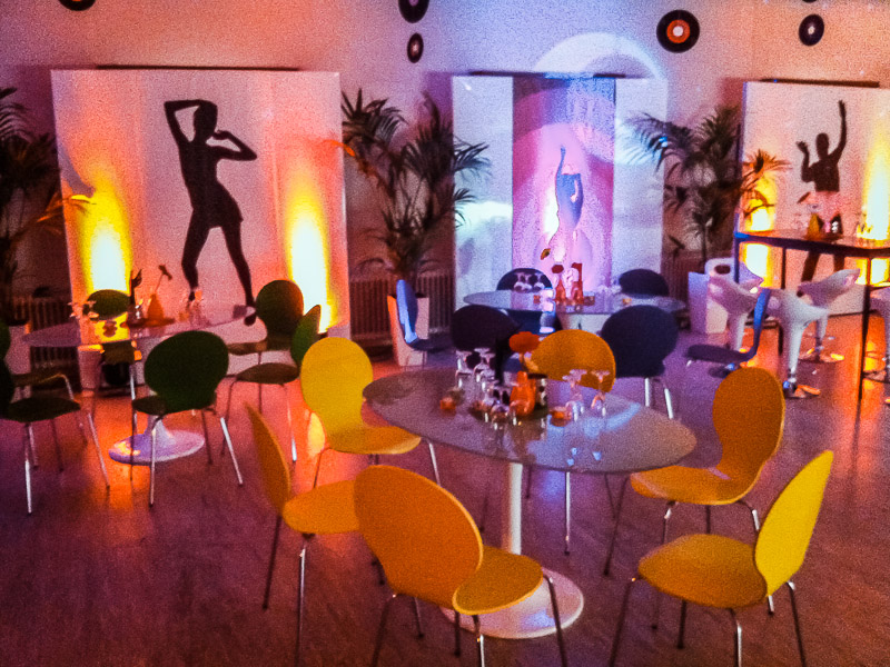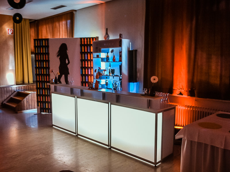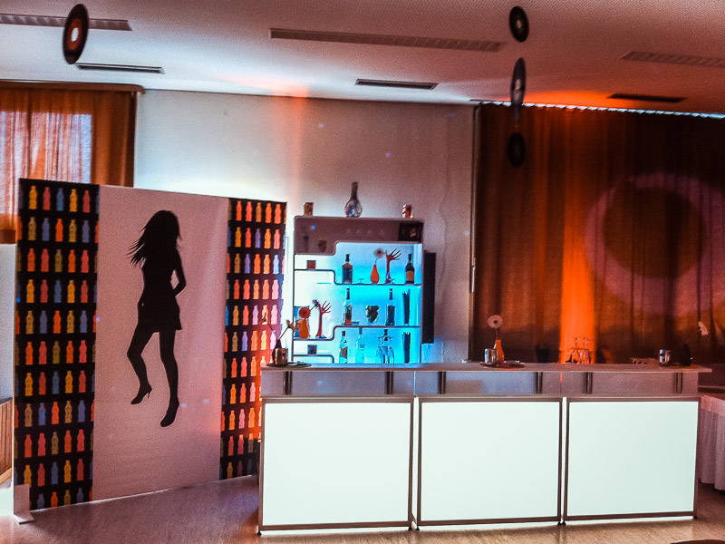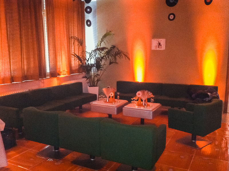 Ein Vorher-Nachher-Vergleich zeigt, was man aus einer in die Jahre gekommenen Gemeindehalle machen kann. Diese Private 70er Party anlässlich eines Geburtstages fand in Welmlingen statt.