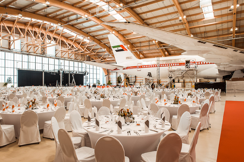 Für 1.000 Personen statteten wir den neuen Hangar mit Sitzplätzen, Konferenzbestuhlung und Lounge anlässlich der Neubauten aus. Das Ergebnis konnte sich durchaus sehen lassen.