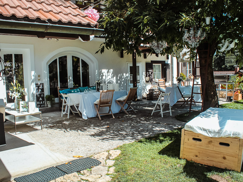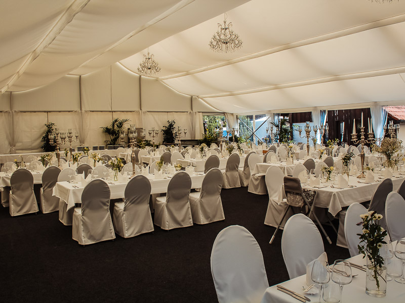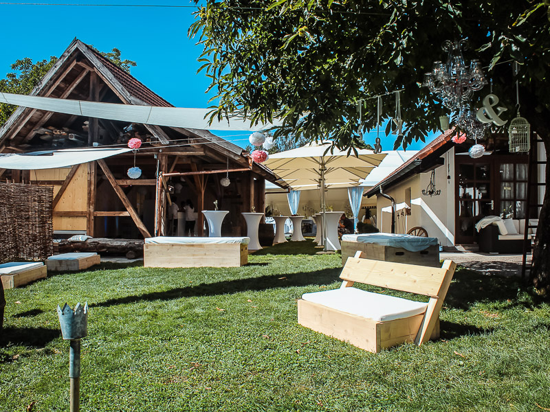 2013 feierte ein Brautpaar aus Wehr im eigenen Garten. Der eigene Schopf wurde zur Partyfläche und das ausgestattete Festzelt wurde für das Festessen genutzt. Wer sich ein bisschen Ruhe gönnen wollte, konnte zur Lounge oder an den angrenzenden Bach gehen.