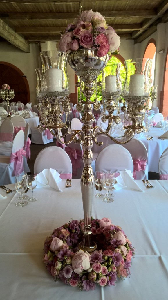 Im Juni 2015 fand diese Hochzeit in der Bogenhalle Schloss Beuggen statt. Zu diesem Anlass wurde die Halle für 180 Personen mit runden Tischen und Stühlen mit Hussen ausgestattet. Die Hochzeitszeremonie wurde im freien vor der Bogenhalle vollzogen.
