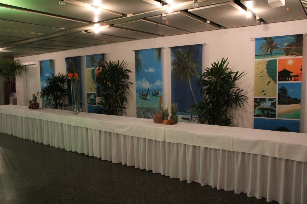 Am 13.06.2015 fand der Mitarbeiter-Abend zum 100-Jährigen Jubiläum der Sparkasse Rheinfelden statt. Hierzu wurde der Bürgersaal für den Karibik-Event komplett umgestaltet. Ein Highlight waren die großen Fotodrucke die mit verschiedenen Dekorationselementen in Szene gesetzt wurden.
