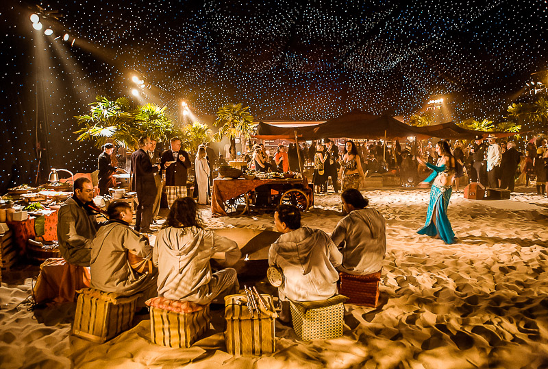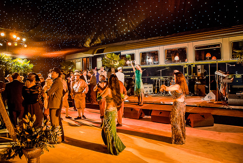 In die alte Güterbahnhofshalle in Haltingen fuhr der Orientexpress von Basel aus mit den Gästen ein. Diese bekamen im Zug einen Koffer mit Kleidern zum Umziehen. Erst hier konnten sie das Motto der Veranstaltung erahnen. Als sie dann in der Wüstenlandschaft in der Bahnhofshalle ausstiegen, staunten sie nicht schlecht. Besondere Herausforderung war hier der fehlende Strom sowie die echten Kamele und Schlangen. Auftraggeber dieses Events waren die Gimmick Studios AG